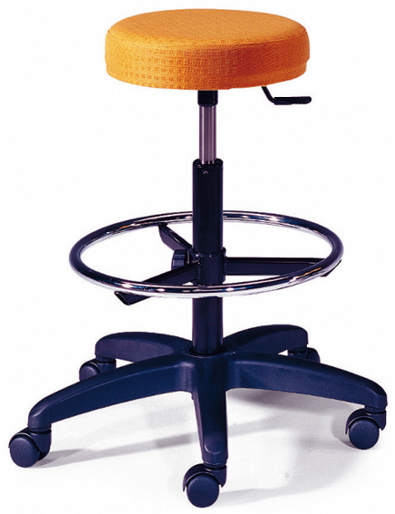 Taburete tapizado “serie 0”. Sin respaldo. Aro reposapiés regulable. Altura regulable por pistón de gas.