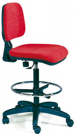Taburete tapizado “serie 0”. Respaldo medio. Aro reposapiés regulable. Altura regulable por pistón de gas.