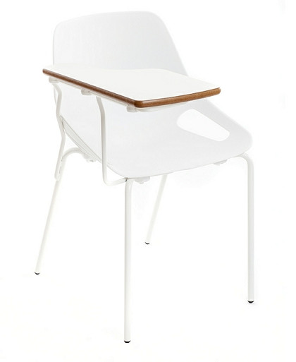 Asiento y respaldo de carcasa en polipropileno con forma anatómica. Pala realizada en MDF cubierta con estratificado alta presión, cantos redondeados y barnizados. Estructura metálica en tubo de acero. El mobiliario se pide por encargo y no es susceptible de devolución. Para casos excepcionales consultar condiciones.