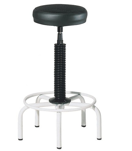 Taburetes con estructura metálica y base de 5 pies. El asiento (simil piel), se regula mediante husillo giratorio. Fácil montaje. Medidas producto (ancho/ largo/ profundidad): 46x60-70x46 cm