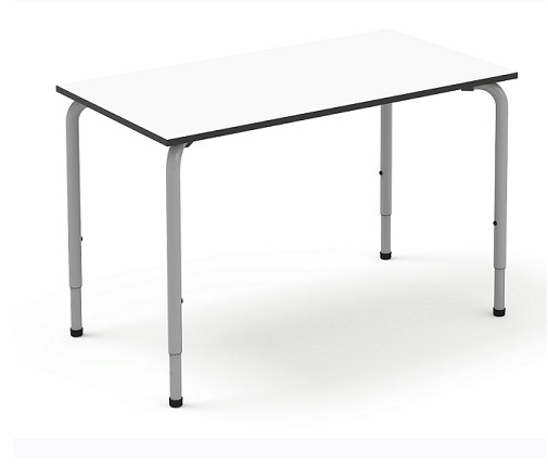 Mesas de aprendizaje significativo y activo de altura regulable. Tallas 1-3 con pata metálica regulable desde la talla 1 a 4, con encimera en MDF blanca y contorno en poliuretano inyectado. El mobiliario requiere montaje y se pide por encargo. No es susceptible de devolución. Para casos excepcionales consultar condiciones.