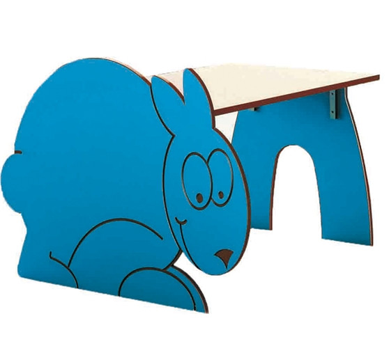 Mesa infantil de 120x60 cm. con tapa en DM estratificado con patas en forma de conejo azul. El mobiliario se pide por encargo y no es susceptible de devolución. Para casos excepcionales consultar condiciones.