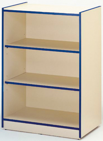 Estantería con dos baldas regulables. Realizada en aglomerado melaminado de 19 mm con cantos en PVC de 3 mm. Medida 115,5x83x43 cm. Se puede superponer y adosar a los modelos 214, 215, 216 y 217. Color crema con canto verde, haya, rojo o azul.