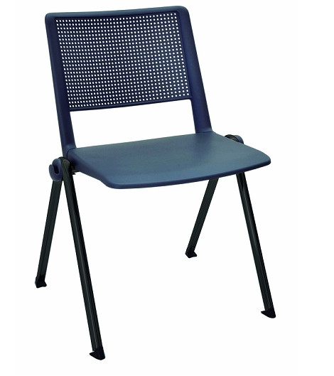Silla apilable multifunción de polipropileno virgen apilable. Cuatro apoyos en tubo de acero redondo. Respaldo con perforaciones que mejoran el confort térmico de la silla. Incluye piezas de unión para formar filas en el mismo color de la carcasa. Altura 45 cm. El mobiliario se pide por encargo y no es susceptible de devolución. Para casos excepcionales consultar condiciones.