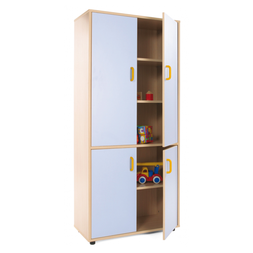 Armario con cuatro puertas y cinco estantes. Puertas interiores antiatrapamiento de dedos. Medidas: ancho 80 x alto 180 x profundo 40 cm.