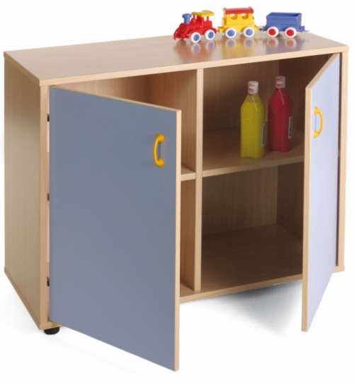 Mueble con puertas y cuatro casillas. Puertas interiores antiatrapamiento de dedos. Medidas: ancho 90 x alto 76,5 x profundo 40 cm.