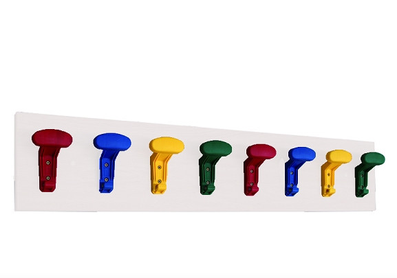 Perchero fabricado en melamina blanca, con tableros de 19 mm. de espesor y con cantos en PVC de 2 mm. Acabado por las dos caras. Dispone de 8 perchas de colores fabricadas en polipropileno con aristas redondeadas y sistema doble colgador, para poder colgar la vestimenta del niño. Garantizado por los ensayos realizados en centro tecnológico de certificación de mobiliario TECNALIA. Dimensiones: Ancho/Alto/Fondo: 100/12/2 cm. El mobiliario se pide por encargo y no es susceptible de devolución. Para casos excepcionales consultar condiciones.