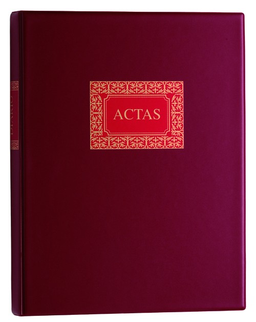 Libro de actas con 100 hojas cambiables. Mecanismo e anillas de 25 mm. fabricado en tapas rojas de PVC. Medidas del papel 210x297 mm. Mecanismo de 16 anillas. Apto para la legalizacion en el ´Registro Mercantil segun Articulos 106 y 332 del reglamento del Registro Mercantil.