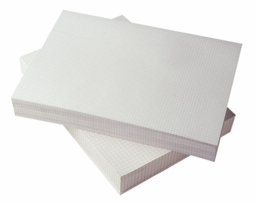 Papel de 70 grs. Envasado en plástico retráctil. Tamaño A4 con margen en paquetes de 500 hojas.